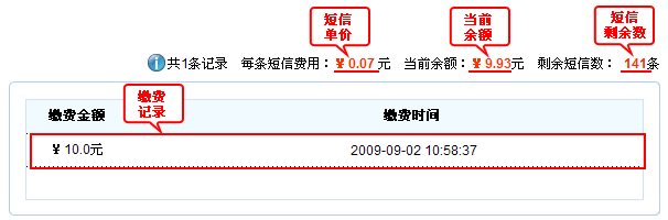 在打开的页面中显示了当前企业会员的短信帐号信息。如下图所示:
